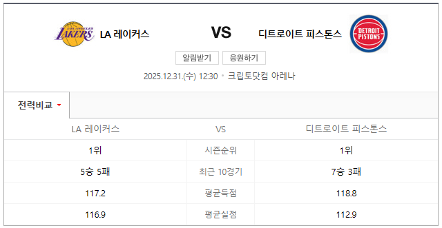 LA레이커스 vs 디트로이트