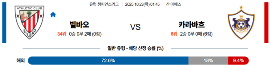 카라바흐의 대응력은 한정적이며, 체력 부담이 누적될수록 빌바오의 템포 조절 능력이 경기 전체를 지배할 가능성이 높다.