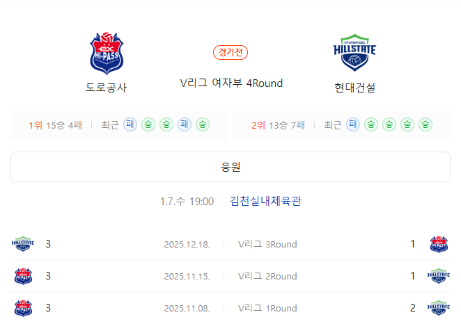 → 현대건설 세트 핸디캡 +1.5 (배당 1.44)