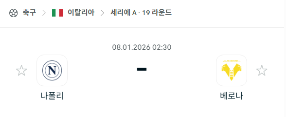 2026년 01월 08일에 열리는 세리에 A의 나폴리와 헬라스 베로나의 경기 분석입니다. 이번 경기는 나폴리의 홈구장인 디에고 아르만도 마라도나 스타디움에서 펼쳐집니다. 현재 나폴리는 승점 37점으로 리그 3위에 위치하며 치열한 우승 경쟁을 벌이고 있는 반면, 헬라스 베로나는 강등권에서 벗어나기 위해 승점이 절실한 상황입니다. 나폴리는 최근 모든 대회에서 4연승을 달리며 파죽지세의 흐름을 보이고 있지만, 헬라스 베로나는 최근 2경기 연속 대패를 당하며 분위기가 침체되어 있습니다. 양 팀의 목표가 극명하게 갈리는 가운데, 나폴리는 우승 도전을 위해, 헬라스 베로나는 잔류를 위해 승점 3점을 노리는 중요한 일전이 될 것입니다.