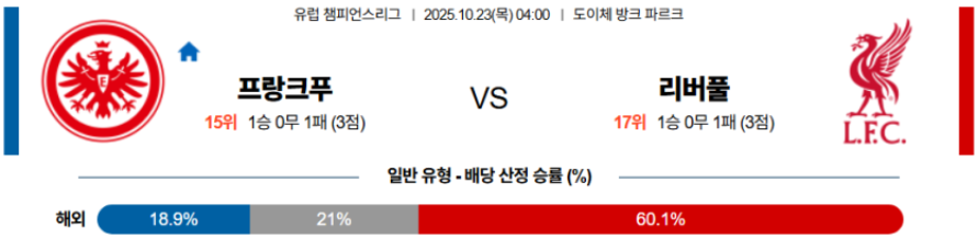 결국 전술적 완성도와 스피드 밸런스 모두 리버풀이 앞서며, 프랑크푸르트는 공격의 지속성이 떨어질 가능성이 높다.