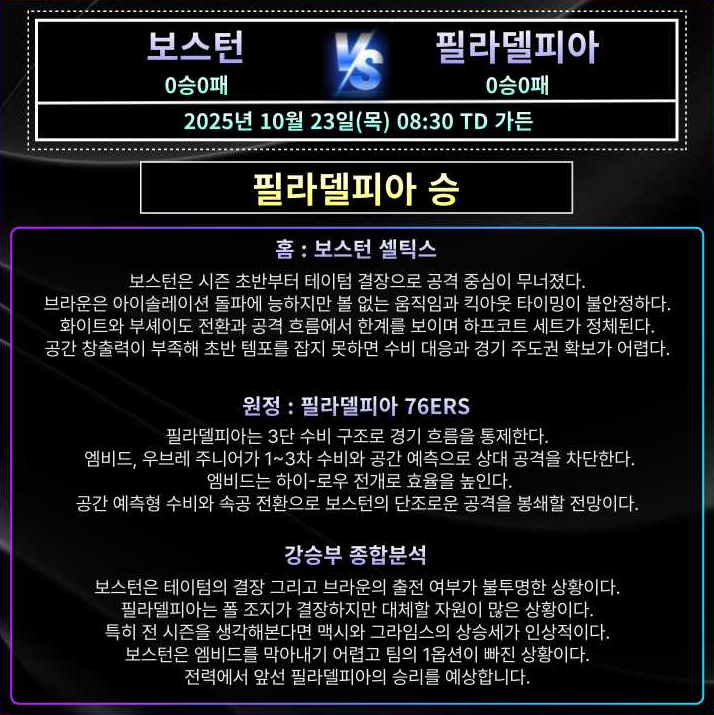 | 2025년 10월 24일 KBL 수원 KT vs 고양 소노 (0) | 2025.10.24 |