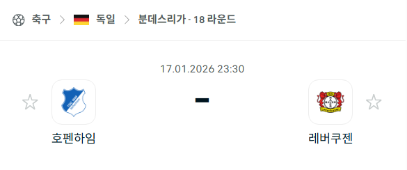 2026년 01월 17일에 열리는 독일 분데스리가의 호펜하임과 바이어 레버쿠젠의 경기 분석입니다. 이번 경기는 호펜하임의 홈 구장인 프레제로 아레나에서 펼쳐지며, 상위권 순위 다툼이 치열한 두 팀의 중요한 맞대결입니다. 호펜하임은 직전 경기에서 보루시아 묀헨글라트바흐를 상대로 5-1 대승을 거두며 공격력이 최고조에 달해 있으며, 홈 5경기 연속 무패라는 강력한 안방 지표를 보유하고 있습니다. 반면 바이어 레버쿠젠은 최근 슈투트가르트전 패배로 주춤하고 있으나, 원정에서 호펜하임을 상대로 5경기 연속 무패를 기록하며 상성상의 우위를 점하고 있습니다. 득점력이 뛰어난 두 팀의 만남인 만큼 화끈한 공격 축구가 예상됩니다.