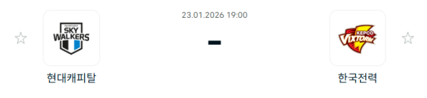 | 한국전력 vs 현대캐피탈 | V리그 남자 (01/29) (0) | 2026.01.29 |