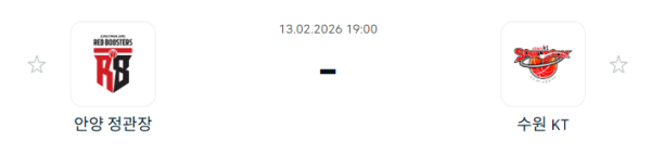| 서울 SK vs 안양 정관장 | KBL (02/15) (0) | 2026.02.15 |