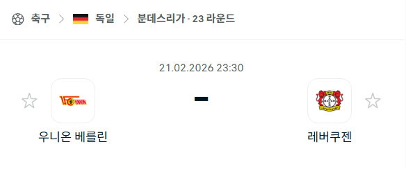 | 쾰른 vs 호펜하임 | 분데스리가 (02/21) (0) | 2026.02.21 |