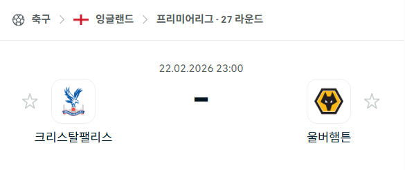 | 선덜랜드 vs 풀럼 | 프리미어리그 (02/22) (0) | 2026.02.22 |