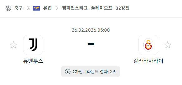 2026년 02월 26일에 열리는 UCL의 유벤투스와 갈라타사라이의 경기 분석입니다. 이번 경기는 챔피언스리그 플레이오프 2차전으로, 이탈리아 토리노에 위치한 알리안츠 스타디움에서 펼쳐집니다. 지난 1차전 터키 원정에서 유벤투스는 전반전 리드를 지키지 못하고 후반에만 대거 실점하며 2/5라는 충격적인 패배를 당했습니다. 3골의 격차를 극복해야 하는 유벤투스는 안방에서 기적 같은 역전 드라마를 노리고 있으며, 갈라타사라이는 1차전의 압도적인 우위를 바탕으로 16강 진출 굳히기에 들어갑니다.