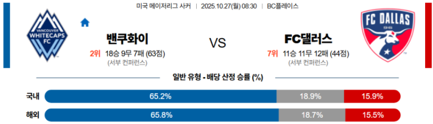 또한 댈러스는 미드필드 2선의 압박 강도가 높기 때문에, 벤쿠버의 후방 빌드업을 초반부터 흔들 가능성이 크다.