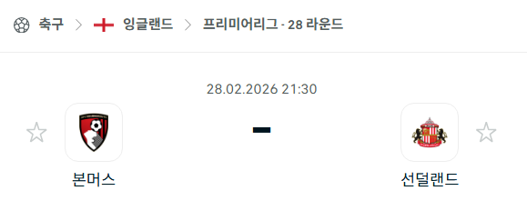 2026년 02월 28일에 열리는 EPL의 본머스와 선덜랜드의 경기 분석입니다. 이번 매치데이는 리그 8위로 안정적인 중상위권을 유지하며 6경기 연속 무패 행진을 달리고 있는 본머스와 최근 기세가 꺾이며 12위로 내려앉은 선덜랜드의 맞대결로 펼쳐집니다. 본머스는 홈 구장인 바이탈리티 스타디움에서 지난 1라운드 2-3 패배를 설욕하겠다는 강력한 의지를 보이고 있으며 선덜랜드는 핵심 선수들의 잇따른 부상 악재를 뚫고 반전을 노려야 하는 상황입니다. 안도니 이라올라 감독의 공격적인 전술과 레지 르 브리스 감독의 역습 전략이 맞물려 박진감 넘치는 경기가 예상됩니다.