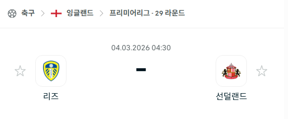 2026년 03월 04일에 열리는 프리미어리그의 리즈 유나이티드와 선덜랜드의 경기 분석입니다. 이번 경기는 지난 시즌 챔피언십에서 함께 승격한 두 팀의 맞대결로 리즈 유나이티드의 홈구장인 엘런드 로드에서 펼쳐집니다. 리즈 유나이티드는 직전 맨체스터 시티전에서 아쉬운 패배를 당하며 무패 행진이 끊겼으나 여전히 강등권과 승점 6점 차를 유지하며 잔류 경쟁에서 유리한 고지를 점하고 있습니다. 반면 선덜랜드는 리그 4경기째 승리가 없는 부진에 빠져 있으며 특히 최근 원정 9경기에서 승리가 없을 정도로 원정 경기력이 심각한 상황입니다. 지난 12월 첫 맞대결에서는 1-1 무승부를 기록했던 두 팀이 이번 리턴 매치에서 어떤 결과를 낼지 주목됩니다.