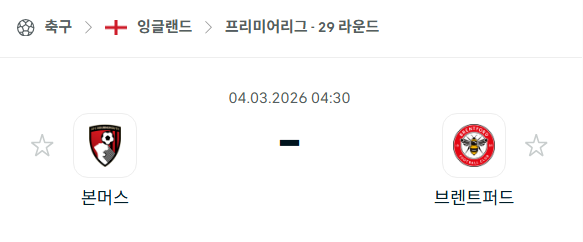 2026년 03월 04일에 열리는 프리미어리그의 본머스와 브렌트포드의 경기 분석입니다. 이번 경기는 본머스의 홈구장인 바이탈리티 스타디움에서 펼쳐지며, 두 팀 모두 유럽 대항전 진출권을 놓고 다투는 중요한 길목에서 만났습니다. 현재 브렌트포드는 승점 43점으로 7위에 위치해 있으며, 본머스는 승점 39점으로 9위에 자리 잡고 있습니다. 두 팀의 승점 차가 크지 않은 만큼 이번 경기 결과에 따라 순위표의 지각변동이 예상됩니다. 안도니 이라올라 감독의 본머스는 최근 7경기 무패 행진을 달리고 있으며, 키스 앤드류스 감독의 브렌트포드는 원정에서 강력한 면모를 보이며 7위 수성에 나섭니다.