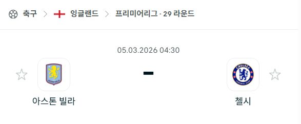 2026년 03월 05일에 열리는 프리미어리그의 아스톤 빌라와 첼시의 경기 분석입니다. 이번 경기는 챔피언스리그 진출권 획득을 위해 사투를 벌이는 직접적인 경쟁자들 간의 맞대결로, 빌라 파크에서 펼쳐집니다. 현재 아스톤 빌라와 첼시는 승점 6점 차이로 인접해 있으며, 두 팀 모두 최근 라운드에서 패배를 기록하며 분위기 반전이 절실한 상황입니다. 홈팀 아스톤 빌라는 추격자들과의 격차를 벌리고 선두권 수성을 노리고 있으며, 원정팀 첼시는 이번 경기를 통해 4위권 진입의 발판을 마련하고자 합니다. 북메이커들은 어느 한 팀의 압도적인 우세를 점치지 않을 만큼 팽팽한 승부를 예고하고 있습니다.