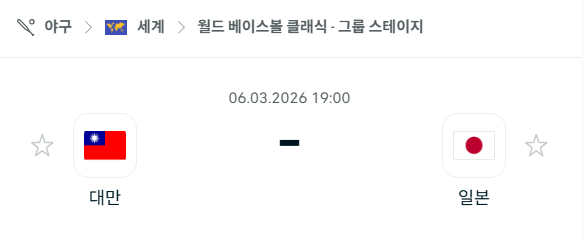 2026년 03월06일에 열리는 WBC의 대만과 일본의 경기 분석입니다. 본 경기는 일본 도쿄돔에서 치러지는 조별리그 맞대결입니다. 현재 대만은 직전 개막전 경기에서 충격적인 패배를 기록하며 0승 1패에 머물러 있는 반면 일본은 이번 경기가 대회 첫 출격입니다. 대만은 쩡하오쥐 감독이 선발투수 발표를 미루며 일본의 선발투수인 야마모토 요시노부를 상대로 총력전을 예고한 상황이며 조별리그 통과를 위해 대만은 반드시 분위기 반전이 필요하고 디펜딩 챔피언인 일본은 홈팬들 앞에서 압도적인 전력을 증명하며 산뜻한 출발을 노리는 매우 중요한 길목이 되는 경기입니다.