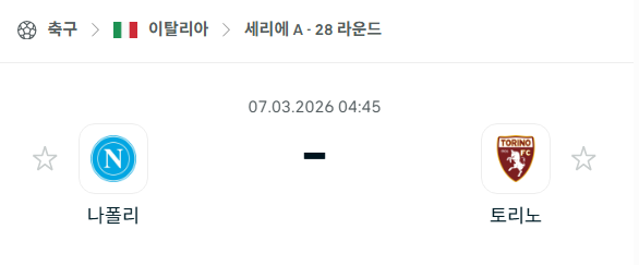 2026년 03월 07일에 열리는 세리에 A의 나폴리와 토리노의 경기 분석입니다. 이번 28라운드 경기는 스타디오 디에고 아르만도 마라도나에서 펼쳐지며 리그 순위표의 서로 다른 위치에 있는 두 팀이 각자의 목표를 위해 격돌합니다. 홈 팀 나폴리는 다음 시즌 챔피언스리그 진출권 확보를 위해 승점 3점이 절실한 상황이며 원정 팀 토리노는 최근 감독 교체 이후 분위기 반전에 성공하며 강등권과의 격차를 벌리려 하고 있습니다. 양 팀의 최근 상대 전적과 흐름을 고려할 때 흥미로운 전술 대결이 예상되는 매치업입니다.
