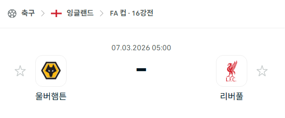 2026년 03월 07일에 열리는 FA컵의 울버햄튼 원더러스와 리버풀의 경기 분석입니다. 이번 경기는 불과 며칠 전 리그에서 맞붙었던 두 팀의 재대결로, 당시 울버햄튼이 후반 추가시간 극적인 결승골로 2-1 승리를 거두며 대이변을 연출한 바 있습니다. 이제 무대를 FA컵 5라운드로 옮겨 단판 승부를 펼치게 된 양 팀은 로테이션 가동과 전술적 변화를 통해 8강 진출을 노리고 있습니다. 홈 팀 울버햄튼은 최근의 상승세를 이어가려 하며, 리버풀은 지난 패배를 설욕하고 명문 클럽의 자존심을 회복하겠다는 강력한 동기부여를 가지고 경기에 임할 것으로 보입니다.