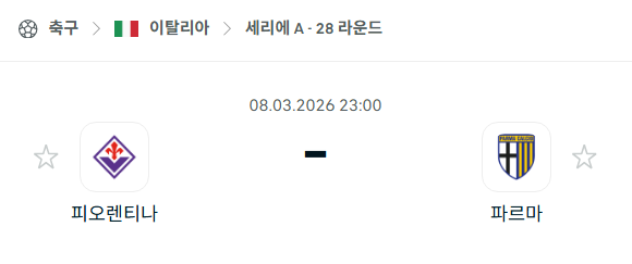 2026년 03월 08일에 열리는 세리에 A의 ACF 피오렌티나와 파르마 칼초의 경기 분석입니다. 이번 경기는 아르테미오 프랑키 스타디움에서 열리는 28라운드 맞대결로, 리그 하위권에서 잔류를 위해 사투를 벌이고 있는 두 팀의 단판 승부입니다. 특히 홈팀 피오렌티나는 강등권과 매우 가까운 위치에 있어 승점이 절실한 상황이며, 원정팀 파르마는 최근의 상승세를 바탕으로 중위권 안착을 노리고 있습니다. 양 팀 모두에게 리그 잔류를 확정 짓기 위한 매우 중요한 분수령이 될 전망입니다.