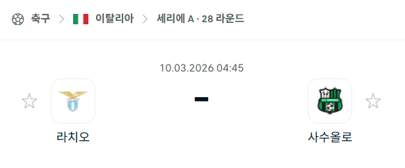 2026년 03월 10일에 열리는 세리에 A의 라치오와 사수올로의 경기 분석입니다. 이번 28라운드 맞대결은 로마의 스타디오 올림피코에서 펼쳐집니다. 현재 라치오는 승점 34점으로 리그 11위에 머물며 기대 이하의 시즌을 보내고 있는 반면, 사수올로는 승점 38점으로 9위에 위치해 라치오보다 앞선 순위를 기록 중입니다. 두 팀의 승점 차는 단 4점에 불과하지만, 최근 보여주고 있는 경기력과 팀 분위기에서는 확연한 차이를 보이고 있어 흥미로운 접전이 예상됩니다.