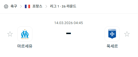 2026년 03월 14일에 열리는 리그 1의 올랭피크 마르세유와 AJ 오세르의 경기 분석입니다. 이번 경기는 오렌지 벨로드롬에서 열리는 리그 1 26라운드 개막전으로 리그 3위에 올라 있는 마이세유와 강등권인 16위에 머물러 있는 오세르의 대결입니다. 마르세유는 최근 하비브 베예 감독 체제에서 리그 순위 굳히기에 나서고 있으며 오세르는 강등권 탈출을 위한 승점이 절실한 상황입니다. 전력 차이가 뚜렷한 두 팀의 맞대결인 만큼 마르세유의 압승이 예상되나 오세르가 원정에서 수비적인 전략으로 변수를 만들어낼 수 있을지가 관전 포인트입니다.
