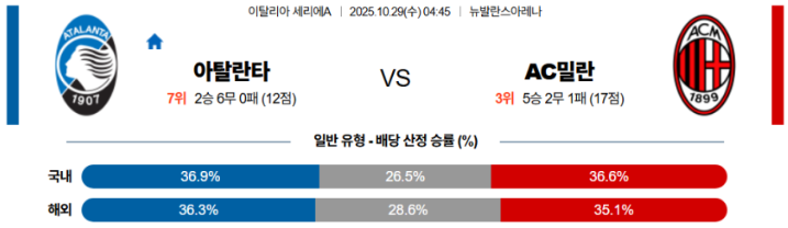 [승/무/패] 아탈란타 패 ⭐⭐⭐⭐ [주력]