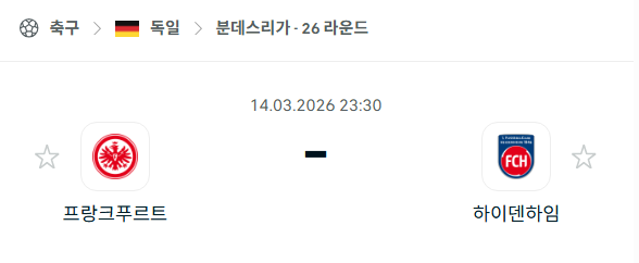 2026년 03월 14일에 열리는 분데스리가의 아인트라흐트 프랑크푸르트와 하이덴하임의 경기 분석입니다. 이번 경기는 프랑크푸르트의 홈 구장인 도이체 방크 파크에서 열리며, 최근 수비 조직력을 재정비하며 승수 쌓기에 나선 홈팀과 12경기 연속 무승이라는 최악의 부진에 빠진 원정팀의 맞대결입니다. 아인트라흐트 프랑크푸르트는 알베르트 리에라 감독 아래 점진적인 발전을 보이고 있으며, 하이덴하임은 리그 최하위에 머물며 잔류권과의 격차가 벌어지고 있습니다. 통산 상대 전적에서는 프랑크푸르트가 6경기 중 5승 1무를 기록하며 압도적인 우세를 보이고 있어, 이번 경기 역시 홈팀의 우세가 예상됩니다.