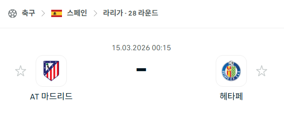 2026년 03월 15일에 열리는 프리메라리가의 아틀레티코 마드리드와 헤타페 CF의 경기 분석입니다. 이번 경기는 스페인 라리가의 전통적인 강호 아틀레티코 마드리드와 최근 무서운 상승세를 보이고 있는 헤타페 CF의 맞대결로 많은 관심을 모으고 있습니다. 홈팀 아틀레티코 마드리드는 주중에 열린 토트넘 홋스퍼와의 챔피언스리그 경기에서 5-2 대승을 거두며 팀 분위기가 최고조에 달해 있으나 체력적인 소모가 변수가 될 수 있습니다. 반면 원정팀 헤타페 CF는 최근 7경기에서 단 1패만을 기록하며 끈질긴 수비력과 효율적인 역습으로 상위권 팀들을 위협하고 있습니다. 양 팀의 최근 상대 전적에서는 아틀레티코 마드리드가 우세를 점하고 있지만 헤타페 CF의 저항이 거셀 것으로 예상되는 만큼 치열한 전술 싸움이 펼쳐질 전망입니다.