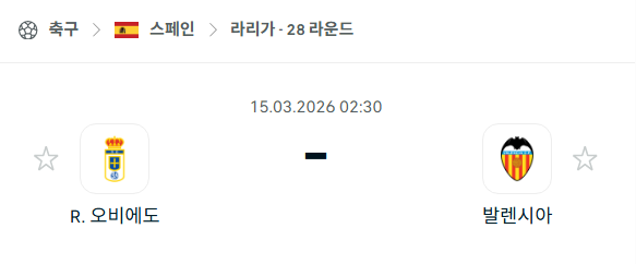 2026년 03월 15일에 열리는 프리메라리가의 레알 오비에도와 발렌시아 CF의 경기 분석입니다. 이번 경기는 강등권 탈출을 위해 사투를 벌이고 있는 레알 오비에도의 홈 구장 누에보 카를로스 타르티에레에서 펼쳐집니다. 홈팀 레알 오비에도는 최근 극심한 부진 속에 잔류권과의 격차가 벌어지며 심리적으로 위축된 상태인 반면, 원정팀 발렌시아 CF는 카를로스 코르베란 감독 부임 이후 최근 4경기에서 3승을 거두는 등 가파른 상승세를 타고 있습니다. 시즌 첫 맞대결에서는 레알 오비에도가 메스타야 원정에서 2-1 승리를 거두는 이변을 연출했으나, 현재의 팀 분위기와 객관적인 전력 지표는 발렌시아 CF 쪽으로 크게 기울어 있는 상황입니다. 양 팀 모두 부상병동이라 불릴 만큼 전력 이탈이 많지만, 최근의 경기력 완성도 면에서 뚜렷한 차이를 보이고 있어 흥미로운 대결이 예상됩니다.