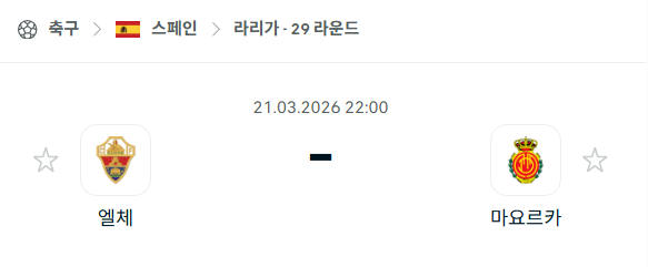 2026년 03월 21일에 열리는 라리가의 엘체 CF과 RCD 마요르카의 경기 분석입니다. 이번 경기는 강등권 탈출을 위해 사투를 벌이고 있는 엘체 CF와 감독 교체 이후 전술적 안정감을 찾으며 반등에 성공한 RCD 마요르카의 맞대결입니다. 홈팀 엘체는 2026년 들어 아직까지 승리를 거두지 못하는 극심한 부진에 빠져 있으며, 매 경기 승점이 절실한 상황입니다. 반면 원정팀 마요르카는 마르틴 데미첼리스 감독 부임 이후 짜임새 있는 축구를 선보이며 강등권과의 격차를 벌리고 있습니다. 하위권 순위 경쟁의 분수령이 될 이번 경기에서 어느 팀이 집중력을 발휘해 귀중한 승점을 챙길 수 있을지 상세한 분석을 통해 살펴보겠습니다.