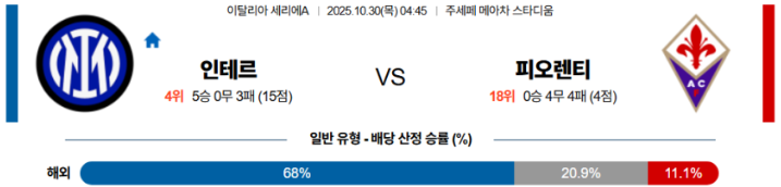 피오렌티나가 압박을 이겨내지 못한다면, 라우타로의 골 결정력으로 이어지는 빠른 역습 패턴이 빛을 발할 것이다.