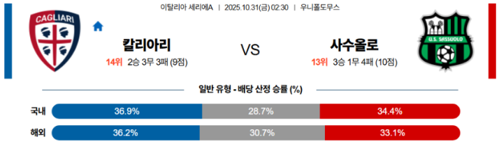 [승/무/패] 칼리아리 승 ⭐⭐⭐⭐ [주력]