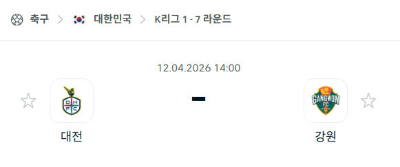 | 충남아산 vs 김해FC | K리그2 (04/12) (0) | 2026.04.12 |