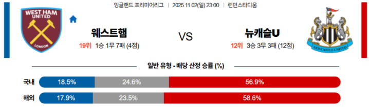 결국 이 경기는 웨스트햄의 불안정한 라인 간격을 파고드는 뉴캐슬의 승리로 귀결될 공산이 높다.