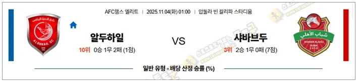 | 2025년 11월 04일 ACLE 트락토르 vs 알쇼르타 (0) | 2025.11.03 |