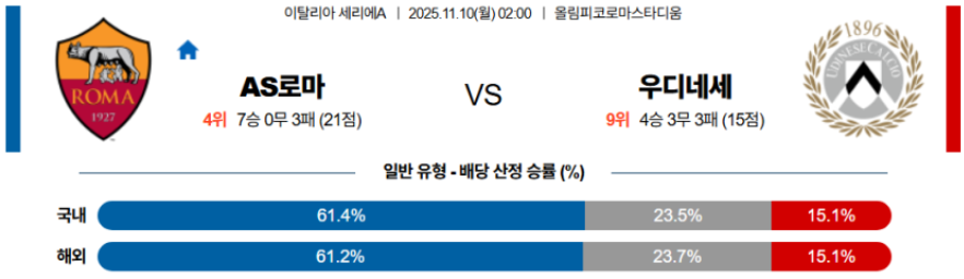 결국 로마의 전술적 완성도와 템포 조절 능력이 경기의 흐름을 끝까지 주도할 것이다.