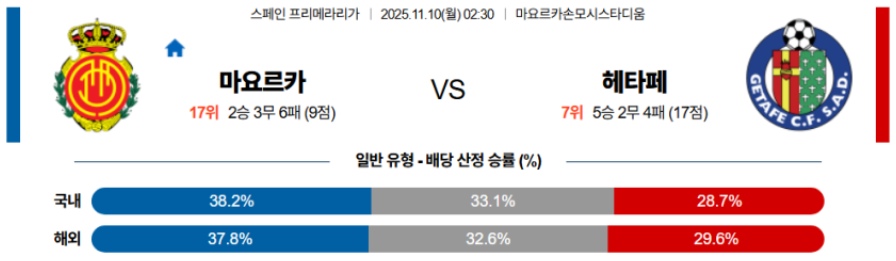 마요르카는 홈의 이점을 살리려 하겠지만, 체력 분배와 반응 속도에서 이미 차이가 난다.