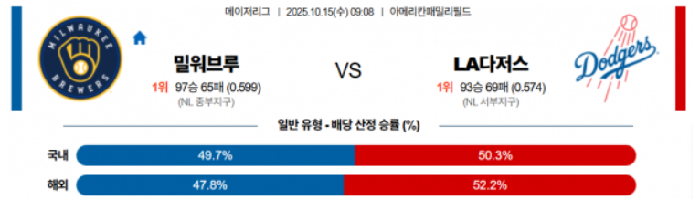 | 2025-10-17 07:08 MLB LA 다저스 vs 밀워키 브루어스 (0) | 2025.10.16 |