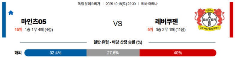 [승/무/패] 마인츠 패 ⭐⭐⭐⭐ [강추]