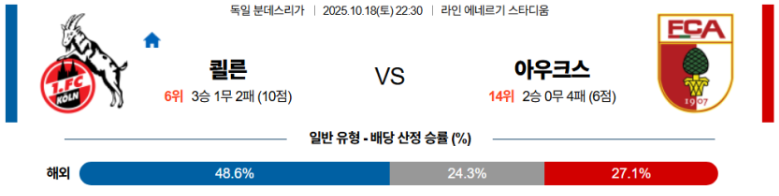 브루탈한 제공권 경쟁과 파포스트 침투 패턴이 반복된다면, 홈 팬들 앞에서 쾰른이 경기 흐름을 완벽히 장악할 것이다.