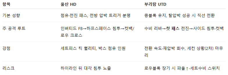 | 코너 | 코너 다소↑ | 양측 측면 전개·재크로스 빈도 높은 구도. |