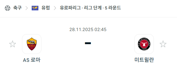 [UEFA 유로파리그] 2025년11월28일 ASAS로마 vs 미트윌란 분석 중계