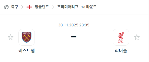 [EPL 프리미어리그] 2025년11월30일 웨스트햄 vs 리버풀 분석 중계
