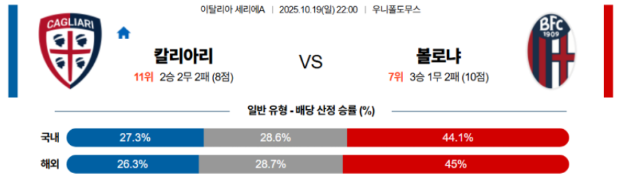 이번 경기는 점유율을 통해 경기의 방향을 통제하려는 칼리아리와, 역습 의존도가 높은 볼로냐의 상성이 뚜렷하다.
