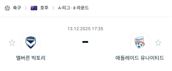 | 2025년 12월 13일 호주 A리그 웨스턴 시드니 vs 브리즈번 로어 (0) | 2025.12.12 |