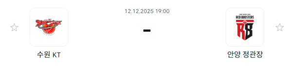 2025년 12월 12일에 열리는 KBL의 수원 KT 소닉붐과 안양 정관장 레드부스터스 경기 분석입니다. 이번 경기는 최근 부진에 빠진 수원 KT가 홈에서 분위기 반전을 노리는 경기이며, 반대로 정관장 레드부스터스은 연승 흐름을 이어가며 상위권 굳히기를 노리는 중요한 맞대결입니다. 두 팀은 시즌 내내 기복을 보였지만 서로 다른 방향으로 흐름이 이어지고 있어 경기 양상은 흥미롭게 전개될 전망입니다. 특히 수원 KT는 부상 공백과 공격 난조로 어려움을 겪고 있으며 정관장 레드부스터스은 주축 자원의 결장에도 불구하고 외곽 화력이 살아나면서 상승세를 만들고 있어 이번 대결의 승부 포인트가 명확하게 드러나는 경기라 할 수 있습니다.
