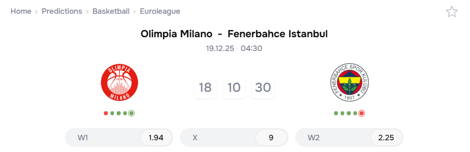 📊 올림피아 밀라노 vs 페네르바체 이스탄불 공식 경기 맞대결 통계: