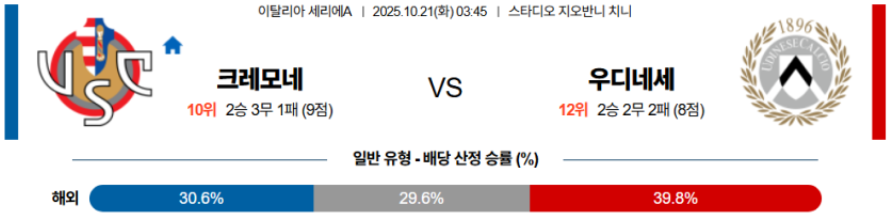 [승/무/패] 크레모네세 승 ⭐⭐⭐⭐ [강추]