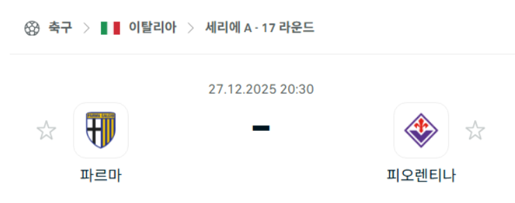 | 토리노 vs 칼리아리 | 세리에A (12/27) (0) | 2025.12.26 |