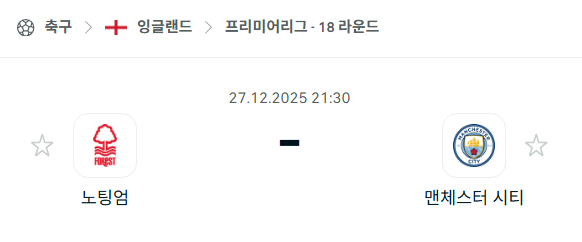 2025년 12월 27일에 열리는 잉글랜드 프리미어리그의 노팅엄 포레스트와 맨체스터 시티의 경기 분석입니다. 이번 경기는 더 시티 그라운드에서 진행되며, 홈에서 수비적인 운영을 선호하는 노팅엄 포레스트와 최근 압도적인 상승세를 이어가고 있는 맨체스터 시티의 맞대결로 관심을 모으고 있습니다.